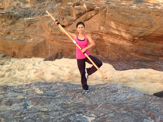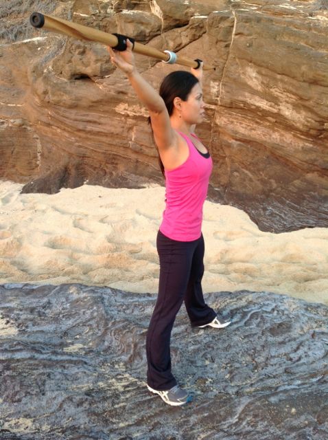 DesignThe Fitness Cue® is a fitness apparatus with helical carved grooves that are symmetrical to the center. The grooves along with the hand slides allow the user an effortless way to slide his/her hands along the staff giving equal spacing to the entire movement. As the hand slides travel along the grooves of the staff, the staff will twist. As the staff twists, each side will assist the other in equal movement creating equal spacing and centering the connector of the staff to the center of the body. The grooves also serve as a feedback mechanism as described below. |